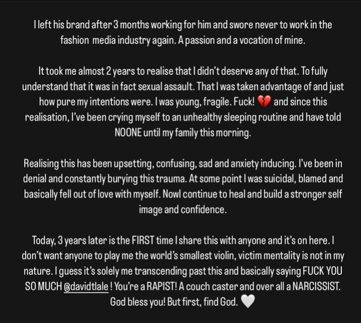Speaking to TSHISALIVE lifestyle section of the Timeslive publication, David, who has been a household name in fashion for nearly 2 decades, has dismissed all allegations and affirmed them as false and malicious.