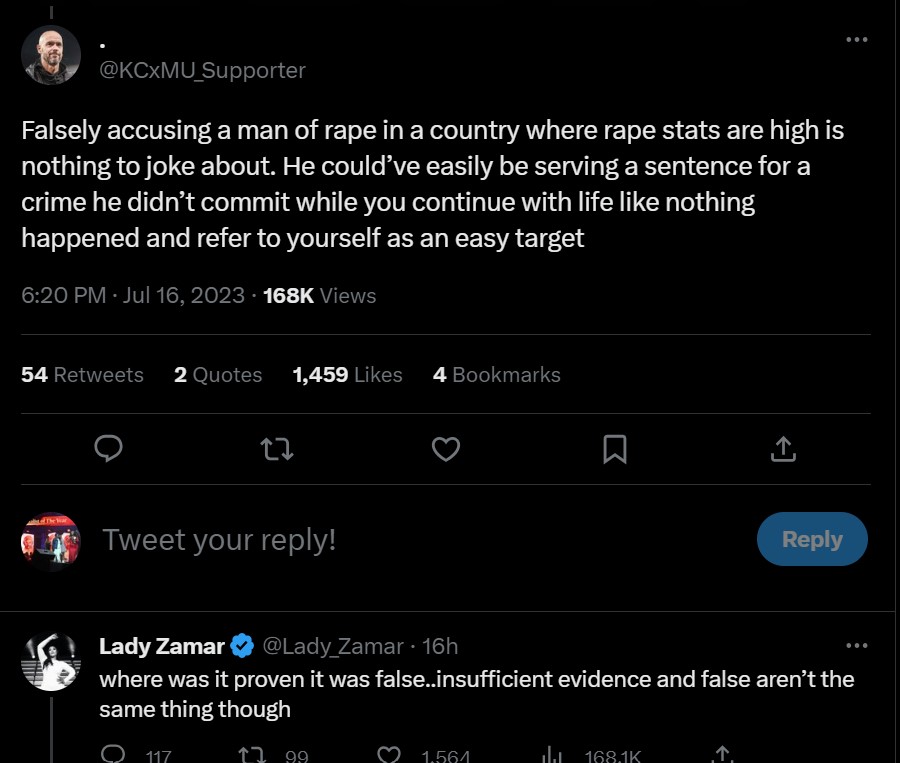 Many had a lot to say concerning her latest post in defense of Sjava, citing a lack of trust in her testimony about the rape allegations. But Lady Zamar was quite active herself in defending her own cause.