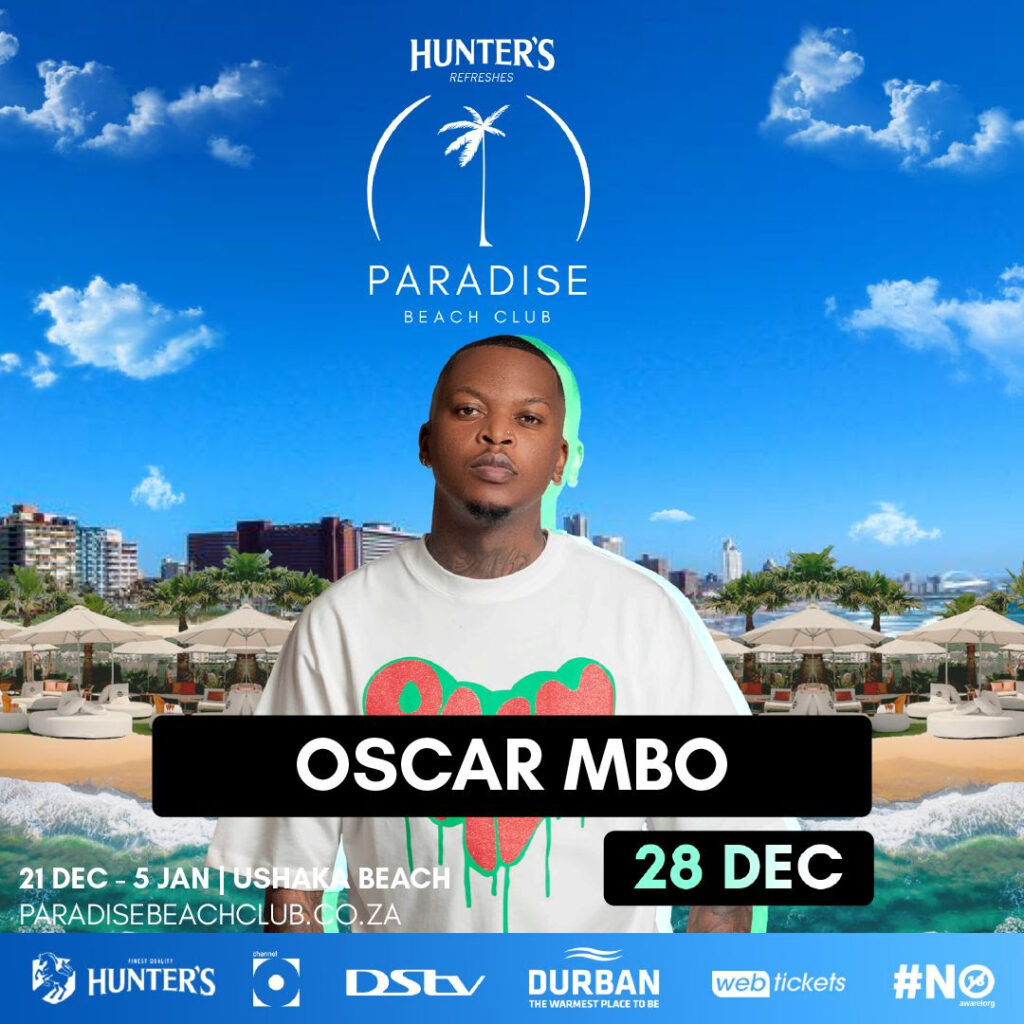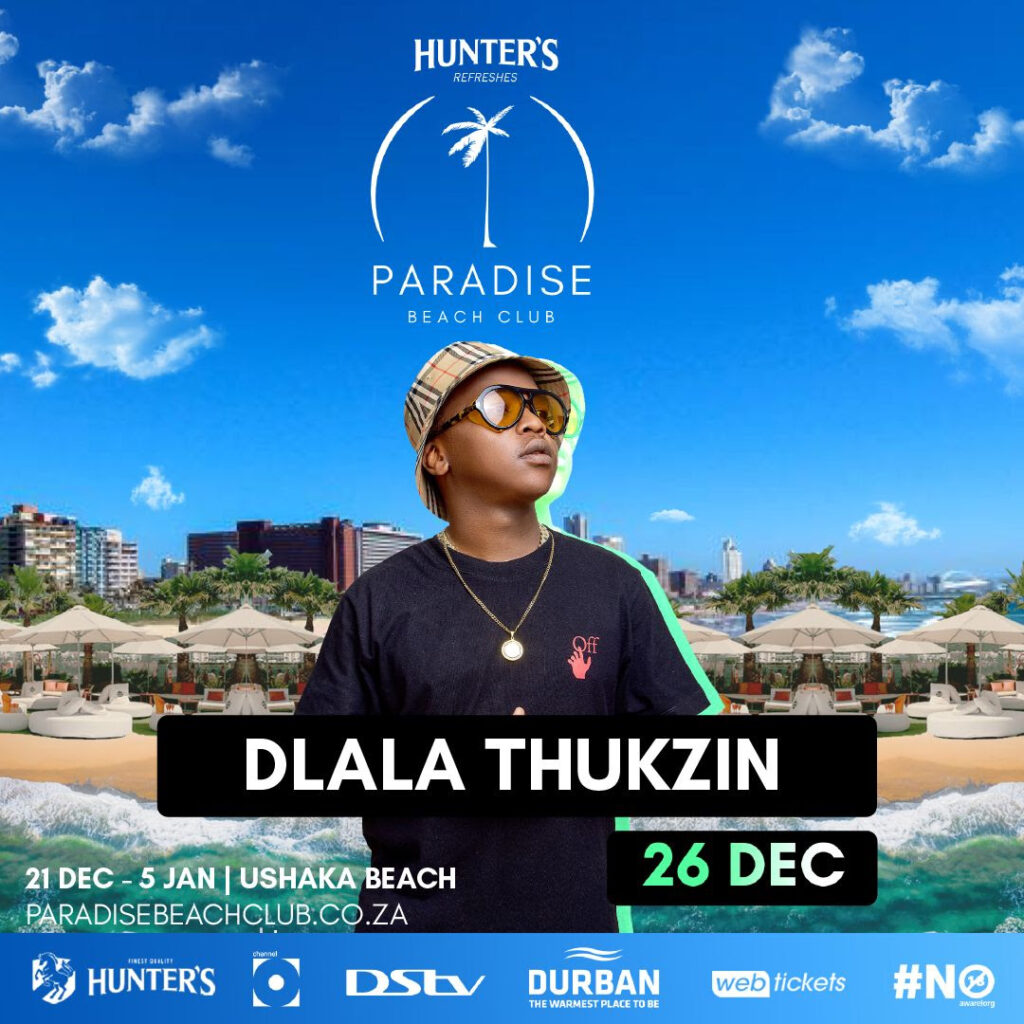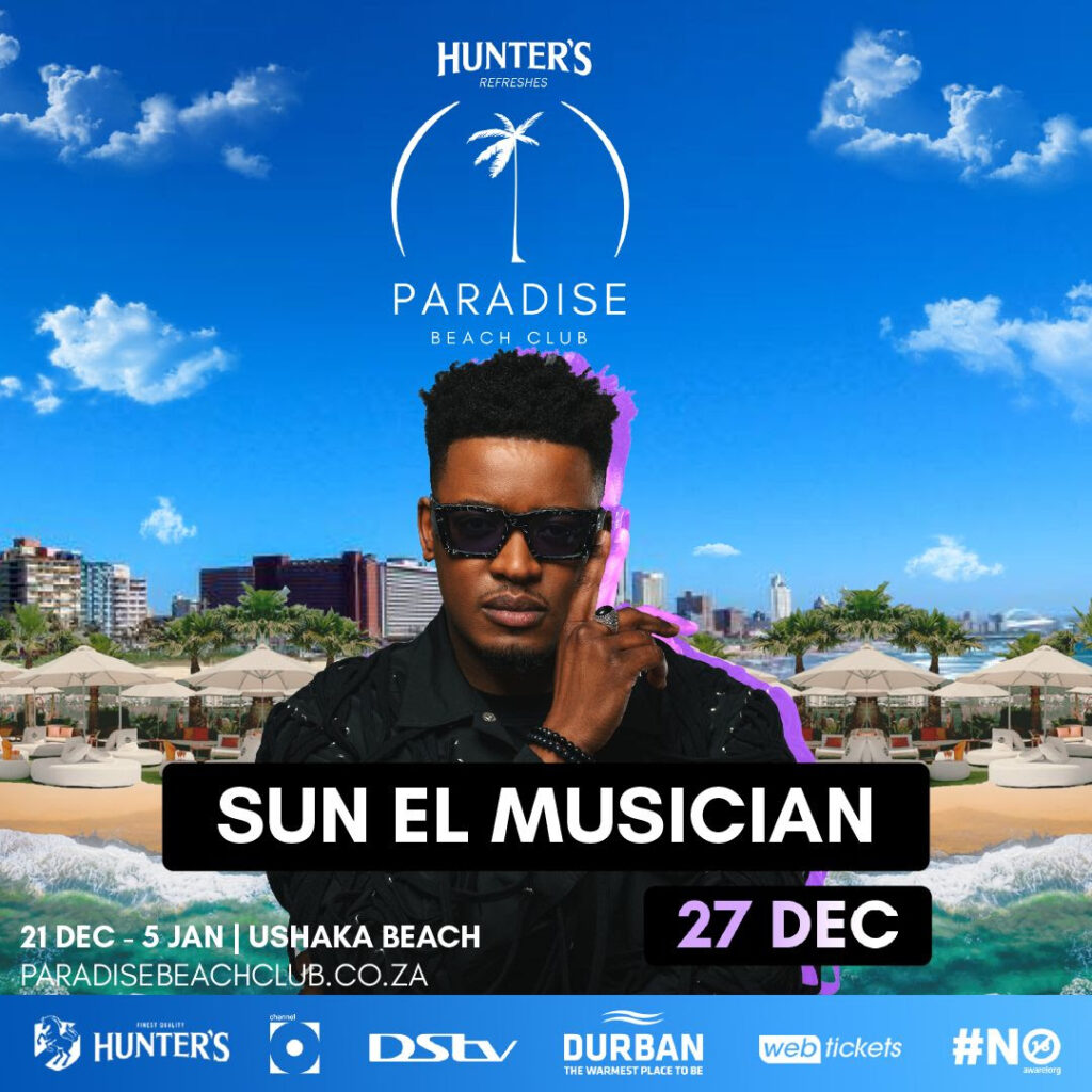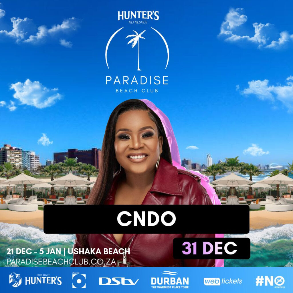 Fee: General access R100, VIP and VVIP packages available (ticket link – Book Here – Hunter’s Paradise Beach Club)