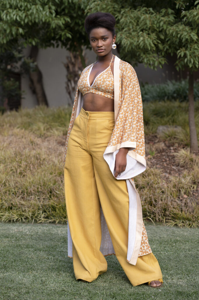 A record-breaking diamond was discovered and unearthed at the Jagersfontein mine in 1893. It was cut into 21 stones varying from 1 carat to upwards of 70 carats. Similarly, the Excelsior Lusso broader collection series will comprise 21 ranges. This resort wear offering being the first in the series. “For the 21piece collection, inspiration was drawn from the cultural Litema (pronounced “di-the-ma”) print; derived from the word “ho lema” which means to cultivate. The print is used in celebration of Easter and Christmas, by the Basotho people who reside in Excelsior, Free State.